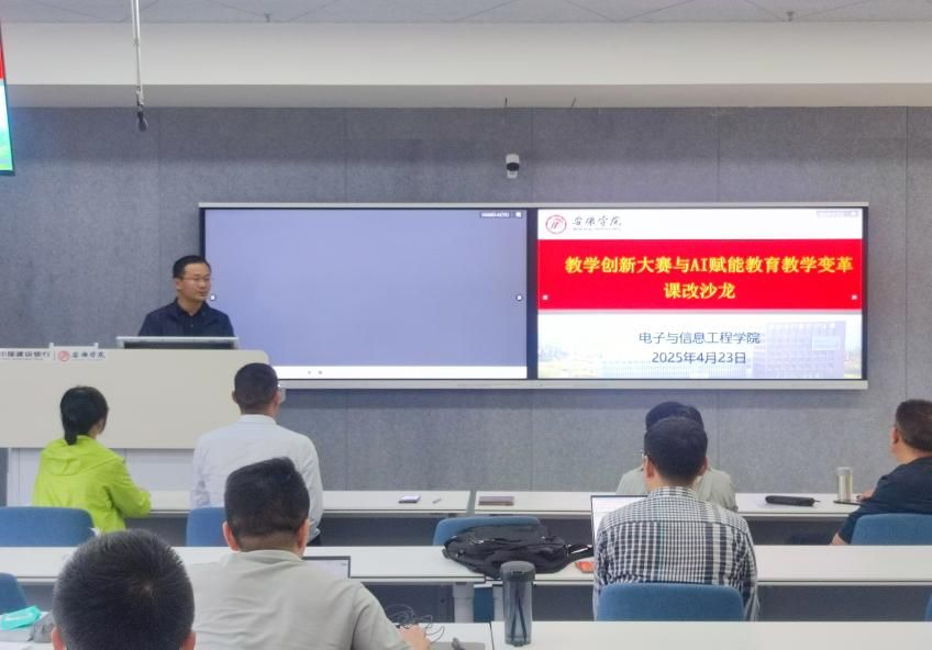 电子信息工程系主任丁礼磊提出“智能体+虚拟仿真”的融合创新模式。他建议,可以通过构建数字孪生实验环境,结合自主智能体技术,打造具有高度沉浸感的虚实结合实验教学场景,从而突破传统实验教学在时空和资源上的限制;朱燕副教授结合其主讲的《信号与系统》课程实践经验,分享了AI赋能的个性化教学探索;计算机系主任梁建勇老师分享了人工智能实现AI导师与学生的互动式、共生式学习新模式。