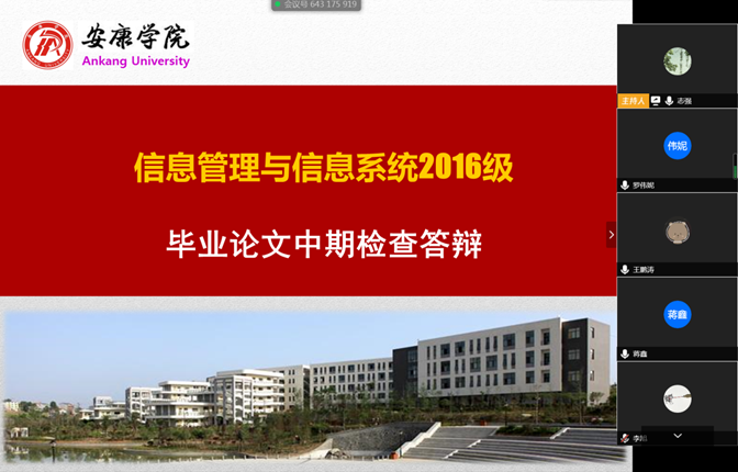 由于受新冠肺炎疫情影响,依据PP电子游戏平台网站2020届毕业论文(设计)的总体工作安排,按照信息管理系毕业论文工作进度要求,确保2020届信息管理与信息系统专业毕业生的毕业论文(设计)工作不因疫情而受严重影响,督促检查学生毕业论文(设计)进展情况,信息管理系各答辩小组精心组织安排、提前测试腾讯会议线上答辩平台,于4月12日前圆满完成信息管理与信息系统专业2020届毕业论文(设计)中期检查工作。