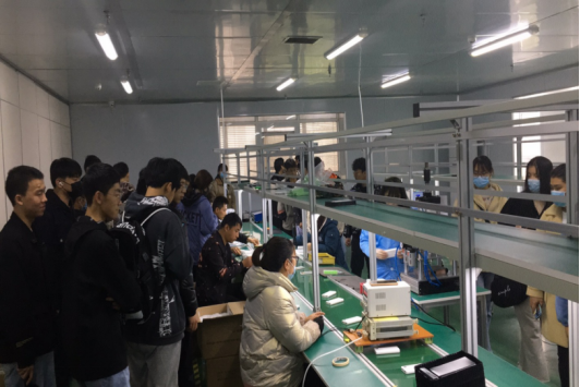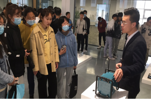 整个活动分为了“公司产品体验”、“生产流程参观”、“产品研发探讨”和“总结交流提升”四个部分。公司国内事业部负责人赵敏对来访的师生表示了热烈的欢迎,并全程带领学生完成了整个见习活动。在公司一楼的产品体验展厅,赵总对公司产品从研发设计到生产、销售进行了详细的讲解,同时邀请学生参与到了公司新产品的体验。随后学生们又来到了二楼的生产车间,参观了真无线耳机、智能音响、移动电源和数据线等产品及相关配件的生产一线。在参观过程中,对于大家提出的各种问题,赵总在讲解生产流程的同时也给予了一一解答。在四楼的产品设计中心,设计部刘昭辉总监通过对分离式智能音响的展示,对产品设计流程进行了详细的讲解,和同学们进行了交流讨论,使同学们进一步了解了当前智能电子产品的设计过程。