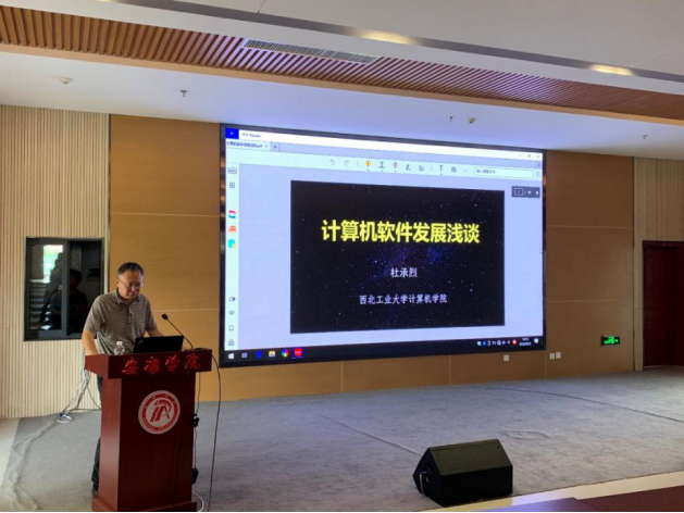 2020年8月31日下午,PP电子游戏平台网站特邀西北工业大学杜承烈教授来我院为师生作题为“计算机软件发展浅谈”的学术报告。报告在江校区图书馆报告厅进行,PP电子游戏平台网站院长陈守满教授主持。