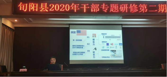 12月17日,PP电子游戏平台网站教师邹圣雷应邀为旬阳县委党校2020年干部专题研修班做“从网络大国到网络强国”的主题报告,旬阳县180名中层干部参加了培训、交流。主题报告会由旬阳县委党校鲁爱民主持。