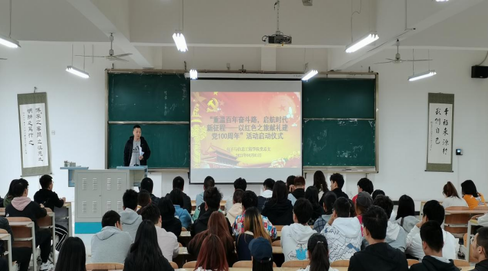 2021年4月1日下午16:00,PP电子游戏平台网站在教学1201教室举办了“重温百年奋斗路,启航时代新征程——以红色之旅献礼建党100周年”活动启动仪式。本次活动出席的人员有:学生工作办公室主任石纭昊老师第一党支部书记成英丽老师,第二党支部书记、团总支书记李章雨老师以及全体学生党员,50、51期入党积极分子等学生主要干部