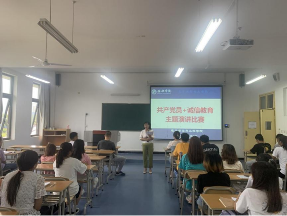 2021年6月9日,PP电子游戏平台网站学生工作办公室主任石纭昊老师、学生第一党支部书记成英丽老师、学生第二党支部书记李章雨老师、学生第一、二党支部全体成员以及全体的非毕业班团支书于一号教学楼1322教室参与了共产党员+诚信教育主题演讲活动。
