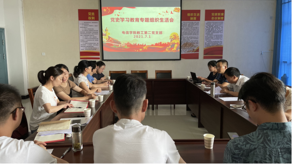 为扎实推进党史学习教育走深走实,切实提高学习教育的针对性和实用性,增强党员同志们的思想自觉和行动自觉,PP电子游戏平台网站教工第二党支部于2021年7月1日下午召开党史学习教育专题组织生活会。会议由教工第二党支部书记余顺园主持,教工第二党支部应到会党员19名,实到会党员15名,因外出学习请假4人。