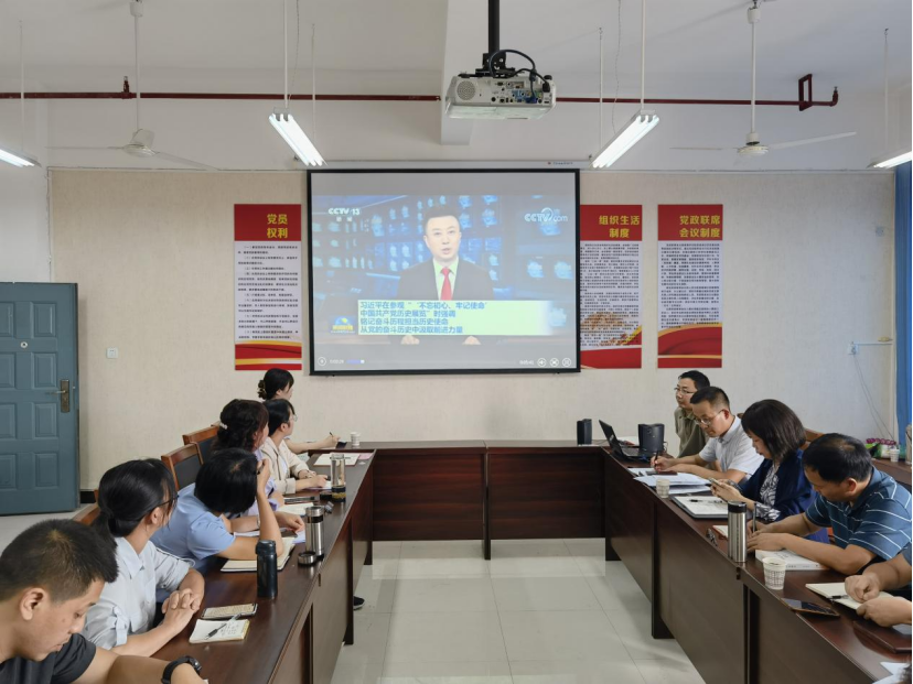 党总支副书记、院长陈守满领学习近平总书记在参观“‘不忘初心、牢记使命’中国共产党历史展览”时的重要讲话精神,集体观看了视频。