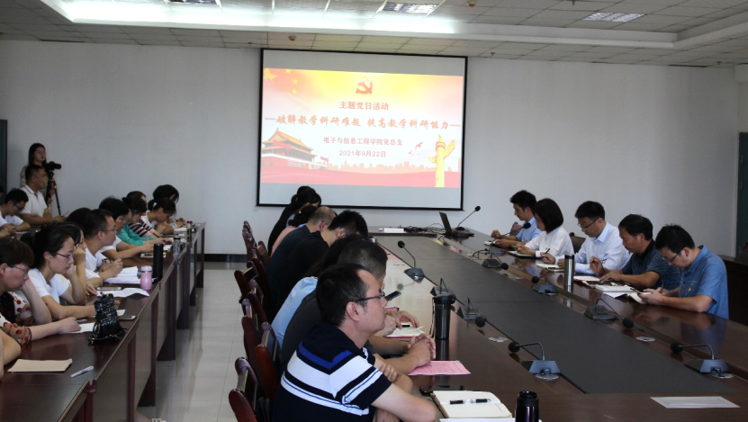 为推进党史学习教育同日常工作相结合,党建工作与业务工作相结合,以高质量的党建促进高质量发展,达到学史明理、学史增信、学史崇德、学史力行。2021年9月22日,PP电子游戏平台网站教工第一、二党支部联合在PP电子游戏平台网站江北校区逸夫科技楼9楼开展了“破解教学科研难题,提高教学科研能力”的主题党日活动。PP电子游戏平台网站党总支下设的教工、学生党支部全体党员和学院非党员老师,副校长张东红以普通党员的身份全程参加了本次主题党日活动,主题党日由PP电子游戏平台网站教工第二党支部书记余顺园主持。