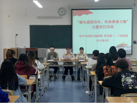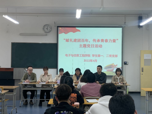 为庆祝中国共产主义青年团成立100周年,喜迎中国共产党第二十次全国代表大会即将召开,为落实立德树人根本任务,加强爱国主义教育,引导和激励青年坚定理想信念,以思想价值教育引领学风建设,培养德智体美劳全面发展的社会主义建设者和接班人。4月20日下午,在江北校区1321教室,PP电子游戏平台网站学生第一、二党支部联合开展政治理论学习暨“献礼建团百年,传承青春力量”主题党日活动。党总支组织委员成英丽,学生第一党支部书记程晓梅、组织(纪检)委员张宇航,学生第二党支部书记李章雨、组织(纪检)委员石纭昊,辅导员吕以宁和在校学生党员参加,主题党日活动由学生第一党支部书记程晓梅主持。
