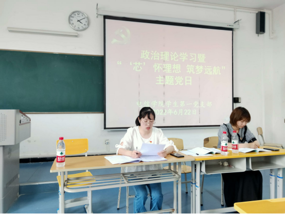 6月22日下午,PP电子游戏平台网站学生第一党支部在江北校区1321教室召开党员大会, 党支部书记程晓梅为全体党员、部分发展对象和入党积极分子讲了一堂别开生面的党课。辅导员吕以宁全程听课。