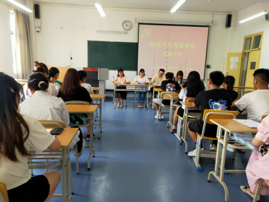 6月22日下午,PP电子游戏平台网站学生第一党支部在1321教室召开了关于接收肖薇等8名同志为中共预备党员的支部大会。PP电子游戏平台网站学生第一党支部书记程晓梅,党总支组织(纪检)委员成英丽,支部组织(纪检)委员张宇航,辅导员吕以宁,支部全体在校学生党员和本期发展对象参加了会议。会议由程晓梅主持。