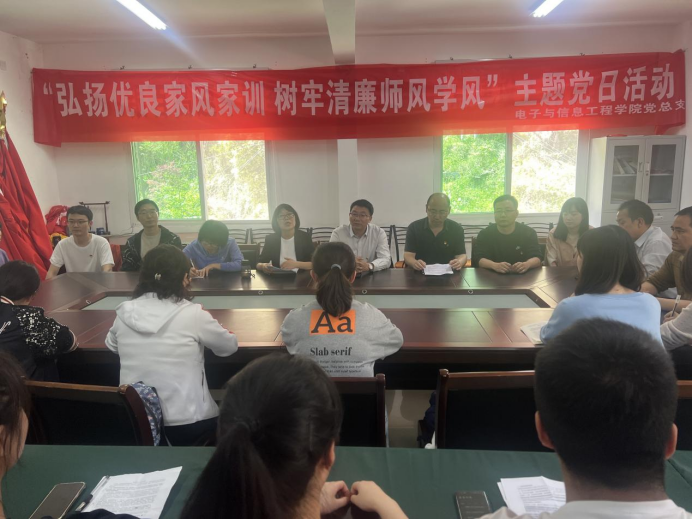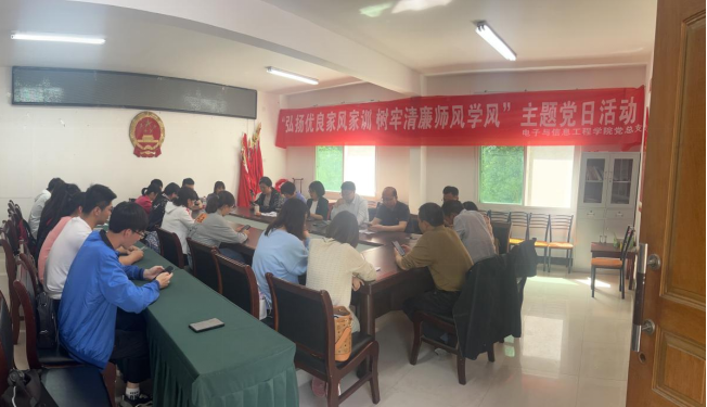 为了深入学习贯彻党的二十大精神,为落实立德树人根本任务营造风清气正的政治生态,在打造清廉学校中积极探索推进优良党风、师风、家风一体化建设,涵养清正校风、教风、学风,构筑新时代清正廉洁的教育高地。4月15日,PP电子游戏平台网站党总支开展“弘扬优良家风家训 树牢清廉师风学风”主题党日活动,党委委员、副校长张东红,党总支下设四个党支部所属党员及教职工、部分学生党员参加。PP电子游戏平台网站党总支书记于咏梅主持活动。