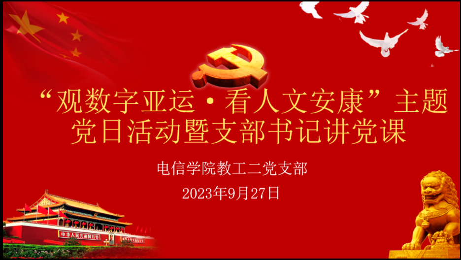 9月27日下午,PP电子游戏平台网站教工二党支部在逸夫科技楼B702开展了“观数字亚运·看人文安康”主题党日活动暨支部书记讲党课。活动由支部书记丁礼磊主持,支部全体党员参加了本次活动。