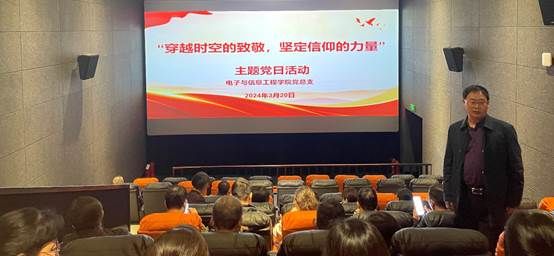 为深入学习贯彻习近平新时代中国特色社会主义思想和党的二十大精神,落实市委宣传部、统战部相关通知安排,2024年3月20日下午,在PP电子游戏平台网站党总支的组织带领下,教工第一、第二党支部党员及非党员教师,学生第一、第二党支部部分学生党员联合开展“穿越时空的致敬、坚定信仰的力量”主题党日活动,观看爱国题材电影《我们的七月》,活动由党总支书记于咏梅主持。