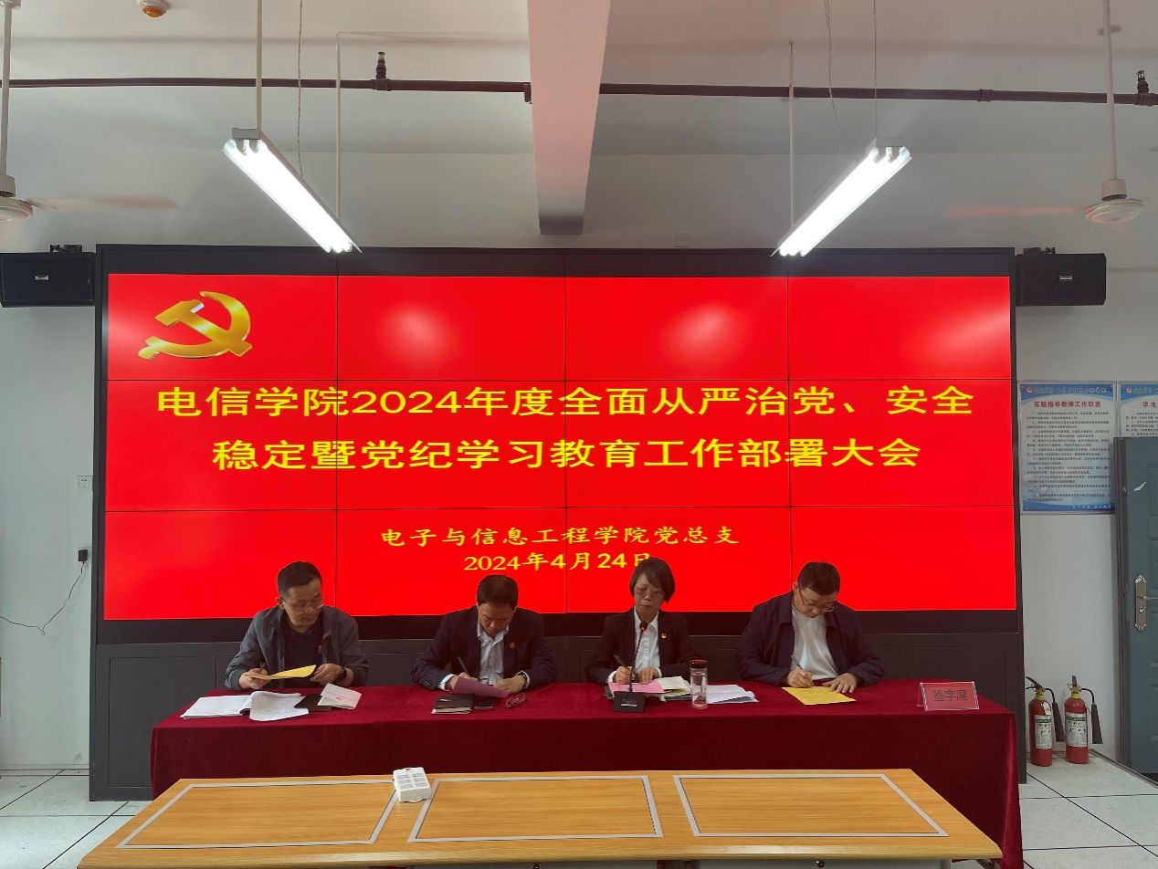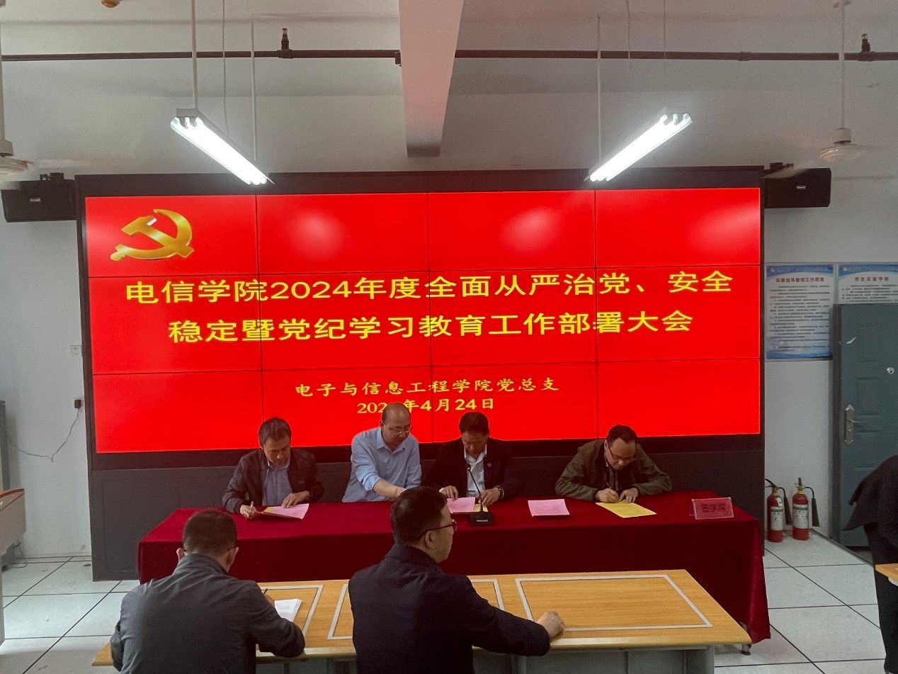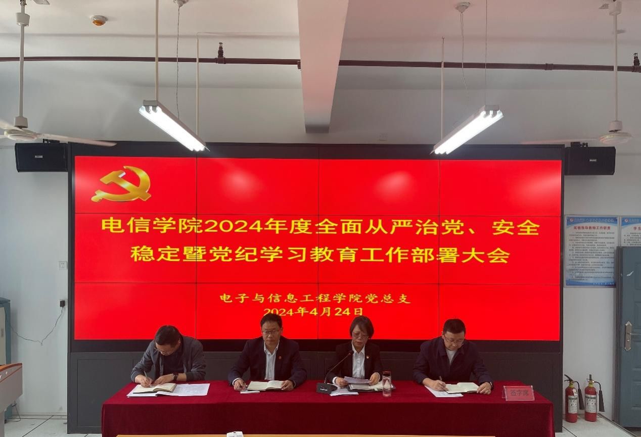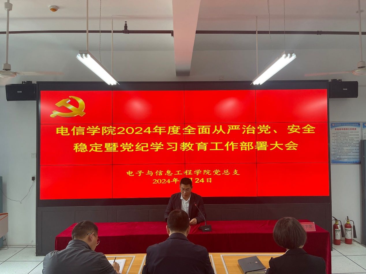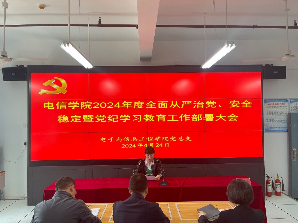 为深入学习贯彻习近平新时代中国特色社会主义思想、党的二十大精神,深入贯彻落实中省纪委全会精神,认真扎实开展党纪学习教育,深入贯彻落实中省和学校党委全面从严治党暨安全稳定和党纪学习教育工作部署会议精神,PP电子游戏平台网站于4月24日在江北校区逸夫科技楼B602召开全面从严治党、安全稳定暨党纪学习教育工作部署大会,PP电子游戏平台网站全体教职工参加,会议由党总支书记于咏梅主持。