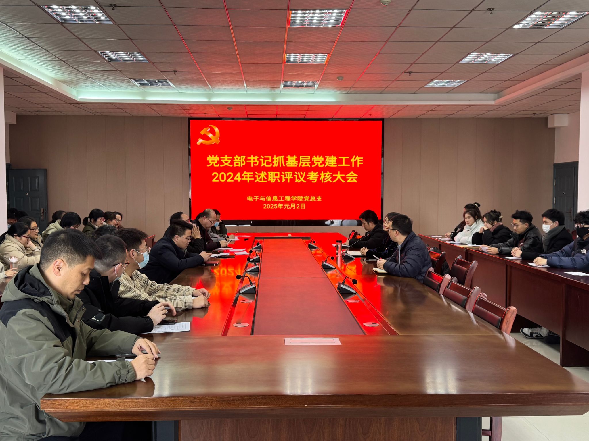 根据《关于开展2024年基层党建述职评议考核工作的通知》(校党发〔2024〕118号)文件精神,2025年1月2日,PP电子游戏平台网站党总支在逸夫科技楼9楼会议室,召开党支部书记抓基层党建工作2024年述职评议考核大会。PP电子游戏平台网站党总支委员、各党支部书记出席会议,PP电子游戏平台网站全体党员参加此次会议。本次会议由党总支书记于咏梅主持。