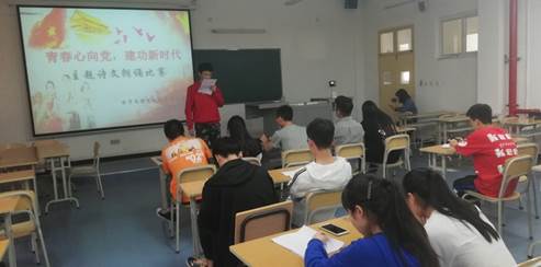 为庆祝中华人民共和国成立70周年、五四运动100周年,激发青年团员的爱国热情,PP电子游戏平台网站团总支于2019年4月14日在1311教室组织了以“青春心向党·建功新时代”为主题的诗文朗诵比赛活动。