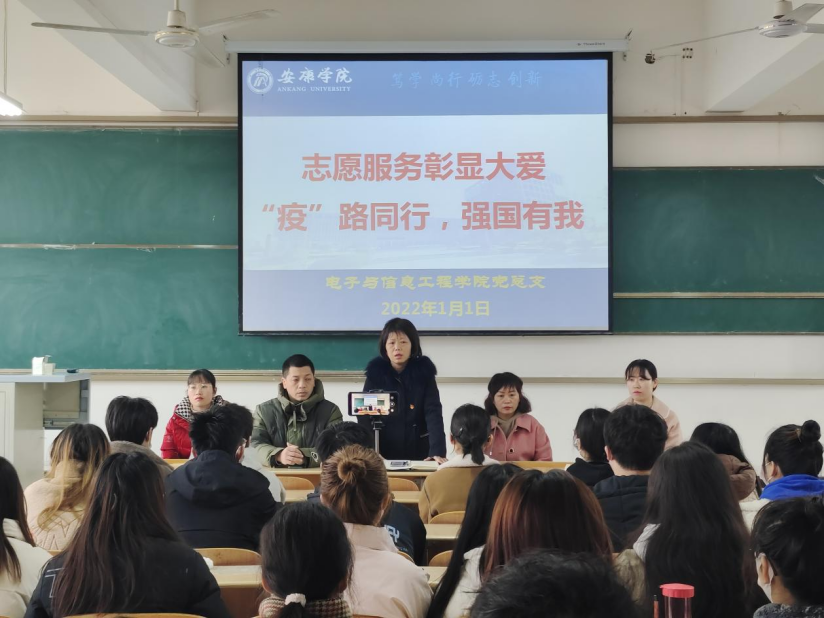 疫情面前,没有人是旁观者,每个人都是责任人。为落实PP电子游戏平台网站新冠肺炎疫情防控工作要求,切实做好疫情防控工作,凝聚学生志愿者力量,为师生营造安全稳定、和谐有序的校园环境氛围。1月1日,PP电子游戏平台网站在1323教室召开以“志愿服务彰显大爱,‘疫’路同行强国有我”为主题的志愿者动员大会。PP电子游戏平台网站党总支书记于咏梅、副书记蔡正旺、学工办主任石纭昊、辅导员成英丽、李章雨、程晓梅、张宇航以及由学生党员、团员、积极分子、团学干部、各班班委、退役大学生士兵组成的青年志愿者疫情防控突击队参加此次会议。