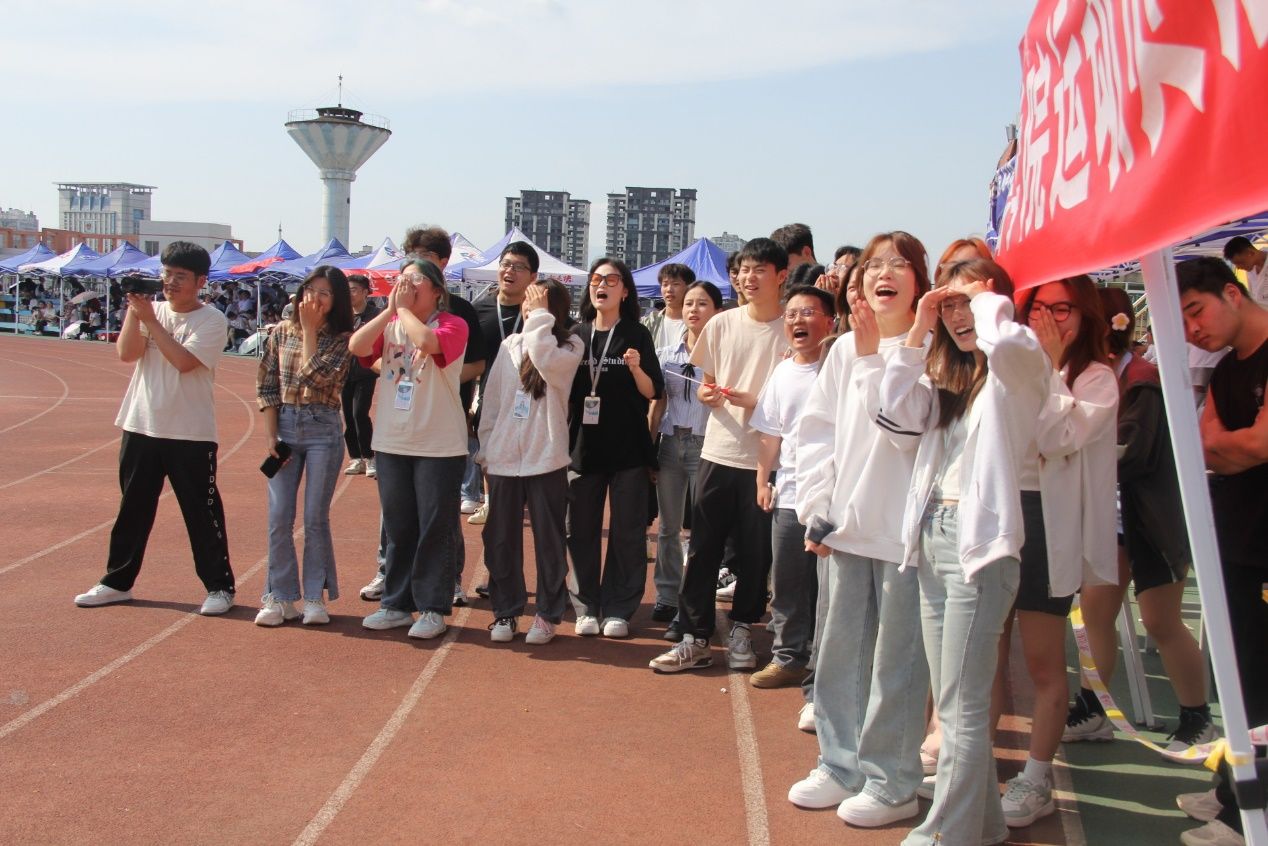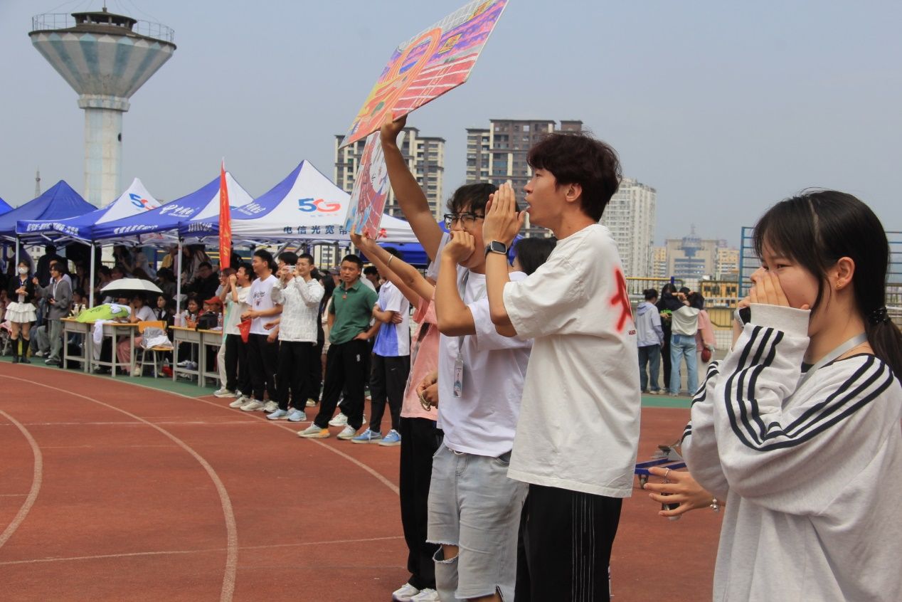 此外还有场外观众的加油助威,他们准备了大鼓、扬声器、加油牌等道具,到场的观众们奋力摇动加油牌,为运动健儿加油呐喊,争做运动会最佳气氛组!极大地鼓舞了参加校运动会的师生的士气。