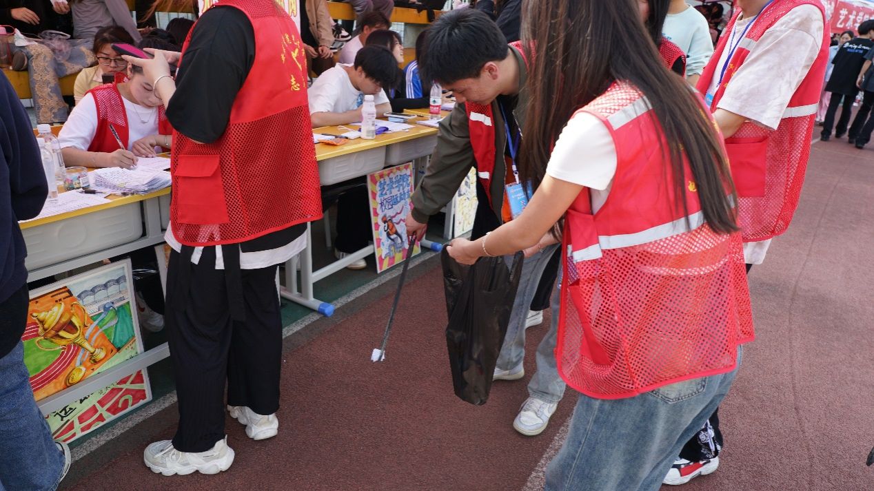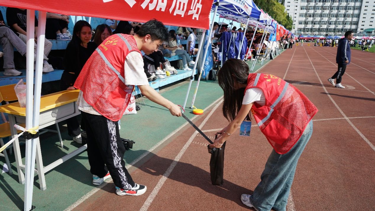 这里有随处可见身穿“红马甲”的学生志愿者。他们为保证运动会各项赛事的顺利进行,默默贡献自己的力量,他们以自己的付出构筑起本届赛事靓丽的风景线。营造了整洁、安全的校园环境,助力校运动会顺利开展。阳光洒在校园的每一个角落,也照亮了那些为校园清洁而忙碌的身影。志愿者们不怕脏和累,不放过任何一个死角,他们的目光敏锐,对任何微小的垃圾都不放过,无论是塑料瓶、废纸片,还是丢弃的食物包装,都被他们一一捡起。