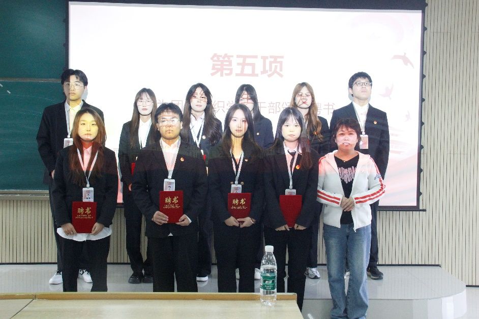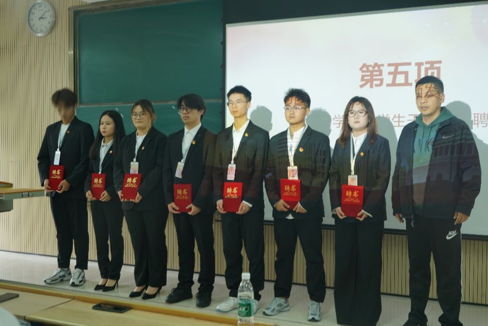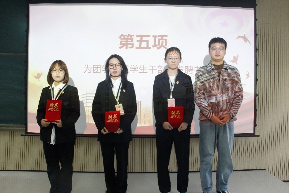 接着由团总支书记张宇航,学工办主任石纭昊,辅导员成英丽,辅导员贾金兵为PP电子游戏平台网站学生组织各部门负责人颁发聘书,之后由团学组织干部向各部门干事进行授牌。同时,在学生分会轮值主席赵晓羽的带领下,第37届学生组织全体干部庄严宣誓,坚定了全心全意为同学服务,为PP电子游戏平台网站高质量发展挺膺担当的决心。