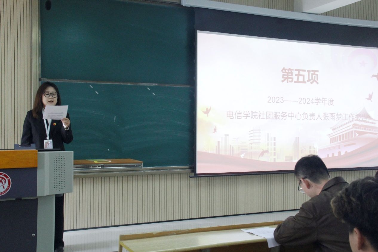 本次大会在庄严的国歌声中拉开序幕。本次会议分为两个阶段。第一阶段为2023--2024学年度PP电子游戏平台网站学生会,团总支,社团服务中心负责人做年度工作总结。他们有效地开展各项工作,实现我院团学组织成员的新老接替,培养和壮大我院团学组织队伍,充分发挥学生干部的模范带头作用,努力做到了服务同学、服务老师、服务学校,充分发挥自身在组织中的作用。