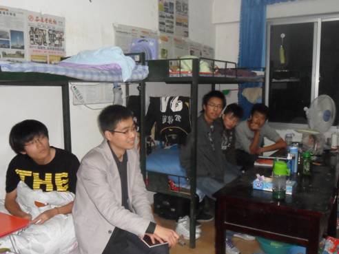 10月26日晚,电信系学生分会对于新生男生宿舍进行走访,开展宿舍座谈活动。