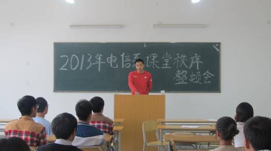 10月15日电信系在1321室召开课堂秩序整顿大会,2012、2012、2013级各班副班长参加会议,会议由学办副主任石纭昊主持。