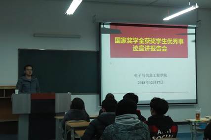 2018年12月17日晚7点30分,PP电子游戏平台网站进行了国家奖学金获奖学生优秀事迹进班宣讲报告会,报告会由团总支书记陈浩老师主持,PP电子游戏平台网站2018年荣获国家奖学金的王松、汪钊、黎敏三位同学作报告,PP电子游戏平台网站全体大一新生参加。