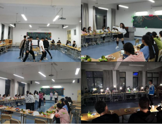 紧接着《喜帖街》、《你是人间的四月天》等歌曲以及爵士舞等各类精彩的文艺表演轮番上演,表演者们用自己的歌声与舞蹈演绎着青春的风采,使晚会的气氛热烈而激昂。才艺表演中穿插着击鼓传花、抢凳子等游戏的互动,同学们积极踊跃参加,促进了同学们之间的交流,增进了团结合作的意识。