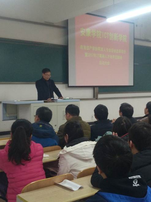 2017年11月29日下午,PP电子游戏平台网站ICT创新学院暨2017年IT高端人才培养定制班启动仪式在1305教室举行。会议由PP电子游戏平台网站副院长陈守满主持。党总支书记何道利、各系主任及15级全体学生参加。