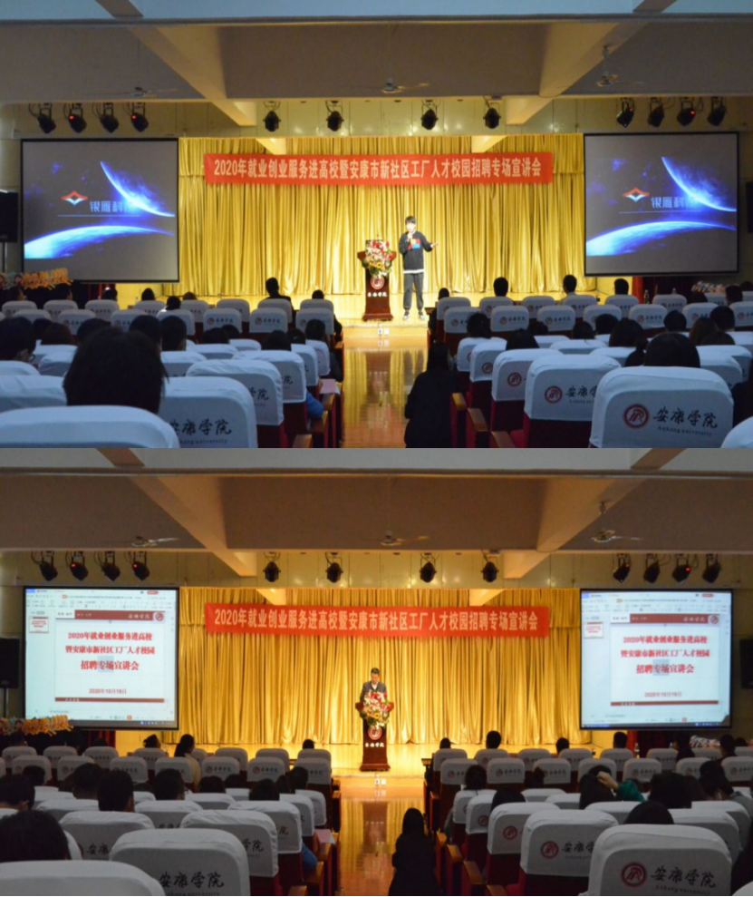 10月19日下午3点,就业创业服务进高校暨安康市新社区工厂人才校园专场招聘会在江北校区1401教室举行,PP电子游戏平台网站党总支书记于咏梅和我院100多名应届生参加会议。