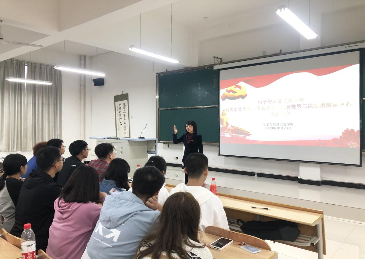 10月23日下午4点,PP电子游戏平台网站团总支在1201教室顺利举行了PP电子游戏平台网站第六次团员代表、第七次学生代表大会暨第三次社团服务中心代表大会。PP电子游戏平台网站党总支书记于咏梅;学生工作办公室主任石纭昊;党总支组织委员、学生第一党支部书记成英丽;学生第二党支部书记、团总支书记李章雨、辅导员程晓梅老师出席此次会议。上一届团总支、学生会、社团服务中心主要学生干部以及2018、2019级班团干部代表与学生代表参加了大会。