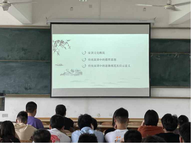 讲座由中华家训源流、传统家训中的德育思想、传统家训中的道德规范及启示意义共三个部分组成。杨明贵老师在讲座中指出,历代优秀家训是中华文明的组成部分,也是传承延续中华美德的重要载体;挖掘整理中华优秀传统家训中蕴含的进步德育思想,对推进当下的公民道德教育、学校德育、家庭教育具有深刻启示意义。杨明贵老师呼吁同学们多阅读经典家训文献,多关注传统家训研究,自觉从优秀家训中汲取精神养料和道德智慧,努力用德性之光照亮奋斗之路。
