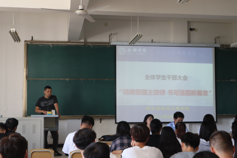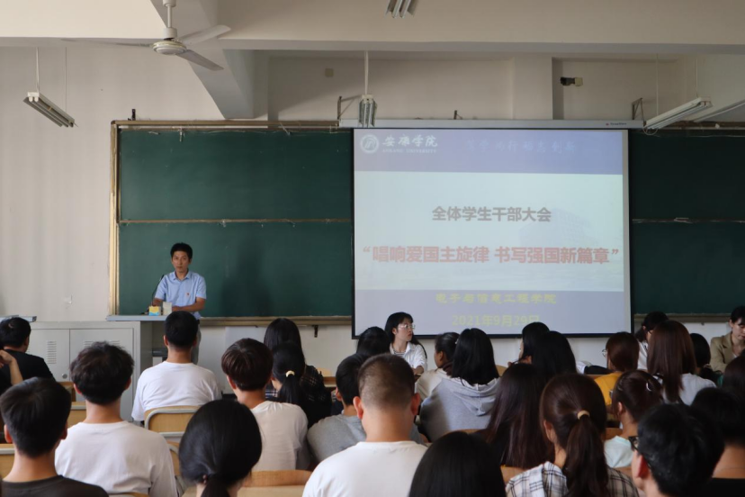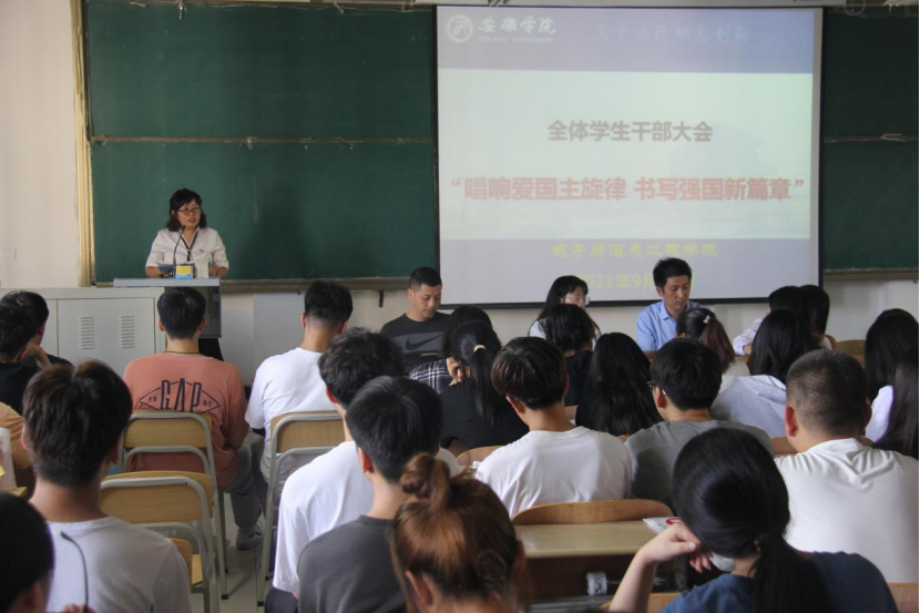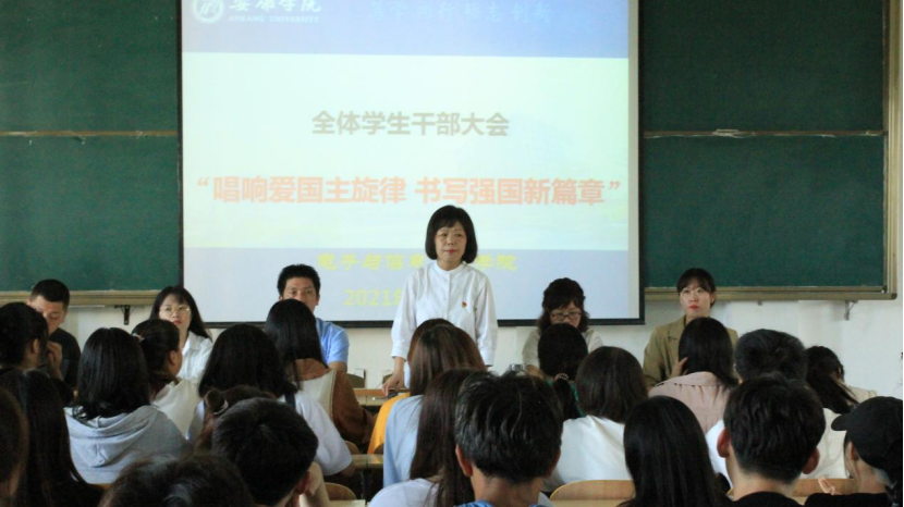 为庆祝中华人民共和国成立72周年,引导广大青年学生自觉践行社会主义核心价值观,涵养家国情怀,增强感恩意识,以实际行动向国庆献礼。9月29日下午2:30,在江北校区1301教室PP电子游戏平台网站党总支书记于咏梅以“唱响爱国主义旋律,书写强国新篇章”为主题为广大电信学子讲党课、团课。PP电子游戏平台网站在校学生党员、本届团总支、学生会主要干部及2019、2020、2021级主要干部、宿舍长200余人参加大会。党总支书记于咏梅,党总支副书记蔡正旺,学工办主任石纭昊,党总支组织委员成英丽,学生第一党支部书记程晓梅,学生第二党支部书记李章雨出席大会。大会由石纭昊主持。