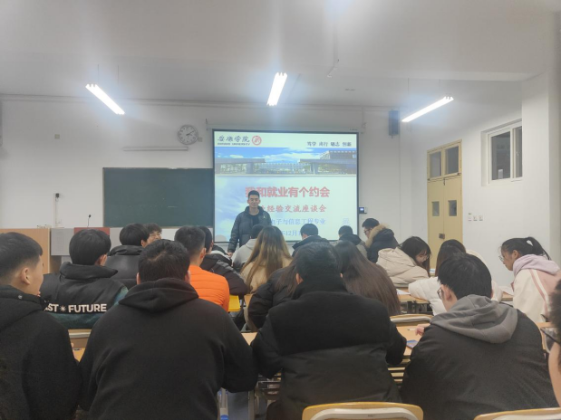 2021年12月11日下午,PP电子游戏平台网站在江北校区教学楼1318教室召开了“我和就业有个约会”为主题的就业经验交流座谈会。此次交流座谈会邀请了2018级两名已经成功就业的学生分享他们的求职经历,电子信息工程专业的毕业班全部学生参加了此次会议。会议由辅导员成英丽老师主持。