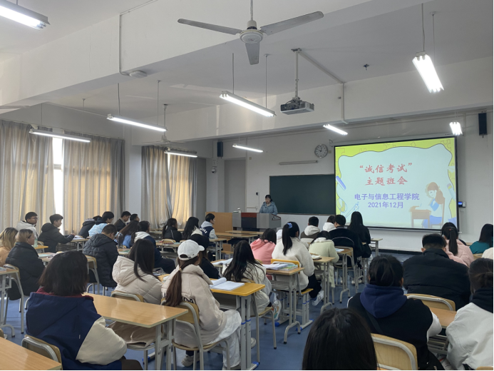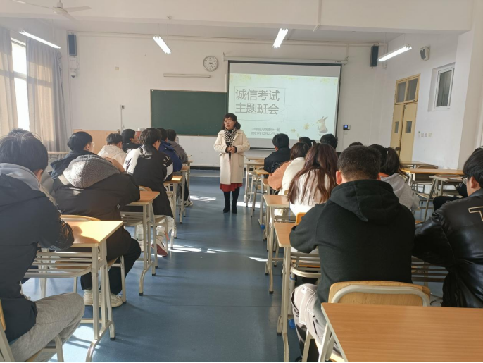 诚信,自古以来就是我们中华民族的传统美德,也是公民的基本道德素质。期末考试来临之际,为进一步加强考风考纪教育,增强学生诚信意识,端正学习态度,严肃考风考纪,树立良好学风和校风,PP电子游戏平台网站各年级各班相继召开了“加强考风考纪教育,创建文明诚信校园”的主题班会。本次会议由PP电子游戏平台网站党总支副书记蔡正旺、学工办主任石纭昊、辅导员成英丽、李章雨、程晓梅、张宇航分别组织开展,学院全体学生参与。