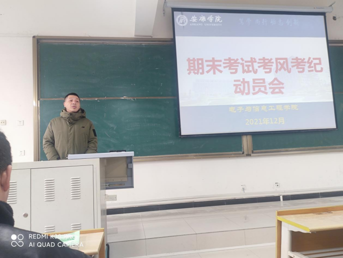 会上,蔡正旺事先询问、了解了同学们的日常学习情况及期末复习进度,指出考试是检测大家学习效果的重要途径,严格遵守考风考纪是学生的基本行为规范,更是一名大学生应具备的基本道德素质,号召大家应秉承严以律己的态度,认真备考、诚信应考,利用考试检测自身的知识水平与学习效果,更好地提高学习成绩。并向同学们传达了学院期末考试工作暨考风考纪教育的相关精神,表明了学院对考试作弊零容忍的态度,要求同学们杜绝违规作弊行为、文明诚信应考,并组织全体同学阅读、签署了诚信考试承诺书,以强化同学们绝不支持、不协助、不纵容、不参与考试作弊的决心。