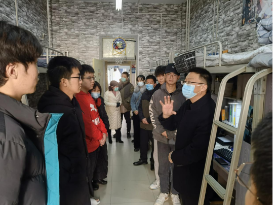 走访中,张东红详细了解同学们的学习生活情况、疫情防控安全与学期末考试安排,鼓励他们认真复习,珍惜时光,争取期末取得好成绩。他嘱咐同学们,在疫情防控依然严峻的形势下,在校期间一定要绷紧疫情防控之弦,绝不能松懈,要遵守防疫相关规定和要求,做好个人防护,保持良好的宿舍卫生,也希望同学们能够适应新情况,遇到任何问题及时向学院反映。并祝福大家在新的一年学业进步、成长成才,为取得更好成绩、实现自我梦想奠定坚实基础。张东红还亲切看望了西安及其他中高风险地区学生,关切询问他们家乡疫情防控形势和寒假去向,鼓励他们坚决服从大局、坚定必胜信念,在校安心学习生活,同时与父母多多沟通,保持昂扬向上的精神状态,积极投身防疫抗疫,彰显青春担当。