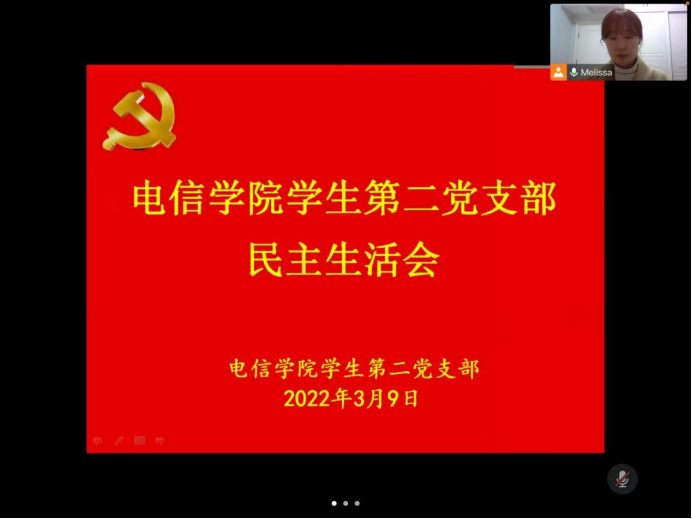 2022年3月9日晚上19:30,根据《中共PP电子游戏平台网站委员会关于召开2021年度组织生活会和开展民主评议党员工作的通知》的相关要求,PP电子游戏平台网站学生第二党支部召开专题组织生活会,开展民主评议党员工作,由于疫情原因会议在线上“腾讯会议”平台举行。会议由支部书记李章雨主持,支部全体党员参加会议。