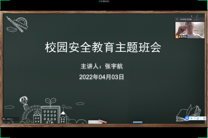 落实安全责任,防范安全风险。学工办主任石纭昊在班会上指出“校园安全,人人有责”,要推动校园安全教育工作,必须提高每一位学生安全防范意识。为积极预防、降低和减少各类伤亡事故,消除校园存在的安全隐患,石纭昊从大学生安全教育的总体形势和开展校园安全教育的重要意义角度向同学们作了详细介绍,具体内容涵盖:网络安全、防诈骗、防火(爆)、防盗、防抢劫、防溺水、防传销陷阱、交际安全、交通安全等多个方面,并以实际案例的形式向同学们列举了大学生活中常见的安全问题及有效的预防措施。