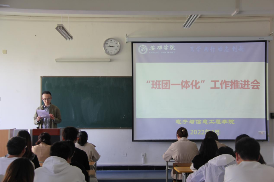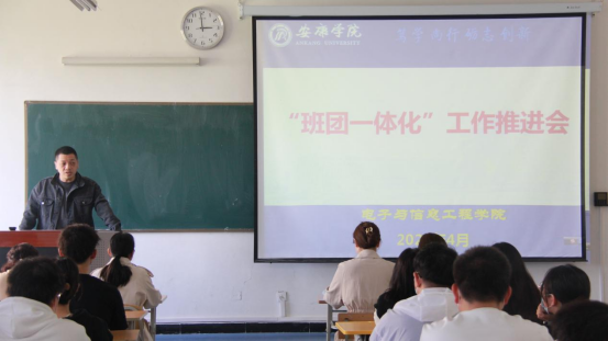 为围绕全团“凝聚青年、服务大局、当好桥梁、从严治团”四维工作格局,持续推进团支部、班委会一体化运行机制,形成育人系统新的有序结构和行为模式,4月20日电信学院在1320教室开展“班团一体化”工作推进会。PP电子游戏平台网站学工办主任石纭昊,团总支书记张宇航,辅导员成英丽、程晓梅、李章雨、吕以宁出席此次会议,PP电子游戏平台网站各班班长及团支书参加,本次会议由学工办主任石纭昊主持。