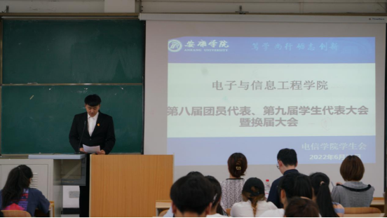 伴随着庄严的国歌声,会议正式开始。首先,由PP电子游戏平台网站第19届团总支副书记于昊做2021-2022学年团总支工作报告。于昊总结了一年以来团总支的各项工作及所获荣誉,并指出了工作中存在的不足,就今后团总支工作表态:“团总支将坚持批评与自我批评,从实际出发,实事求是,充分发挥党的助手和后备军作用,始终坚持贯彻以同学为基,以协作为本,以务实为纲,以创新为领的宗旨,有计划的做好团组织的发展工作,教育并督促团员干部和广大团员在各项工作中起到模范带头作用。”
