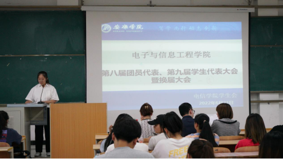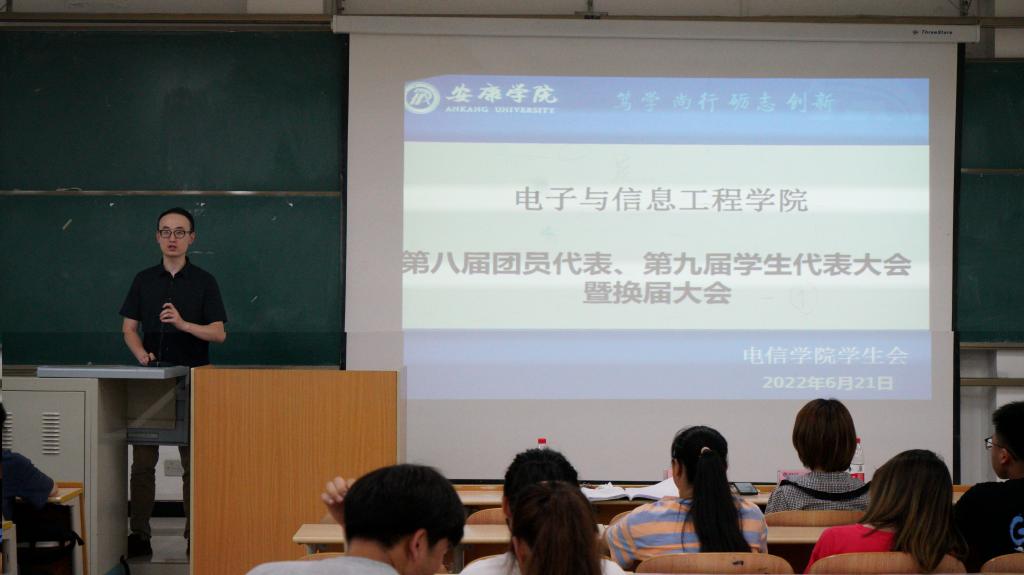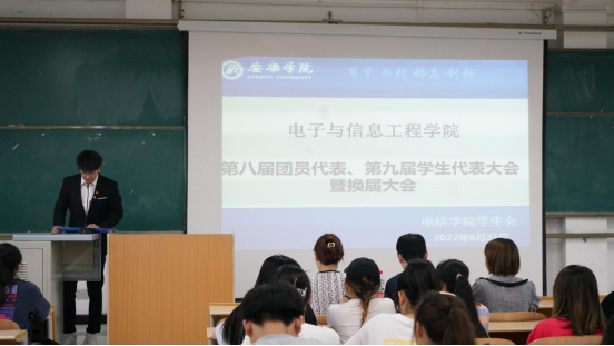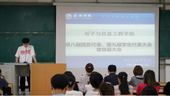 2022年6月21日晚上19:00PP电子游戏平台网站在1404教室举办了第八届团员代表、第九届学生代表暨第三届社团服务中心代表大会。PP电子游戏平台网站学生第二党支部书记李章雨、团总支书记张宇航、辅导员吕以宁出席本次会议,PP电子游戏平台网站团总支成员、学生会成员、社团服务中心成员参加。