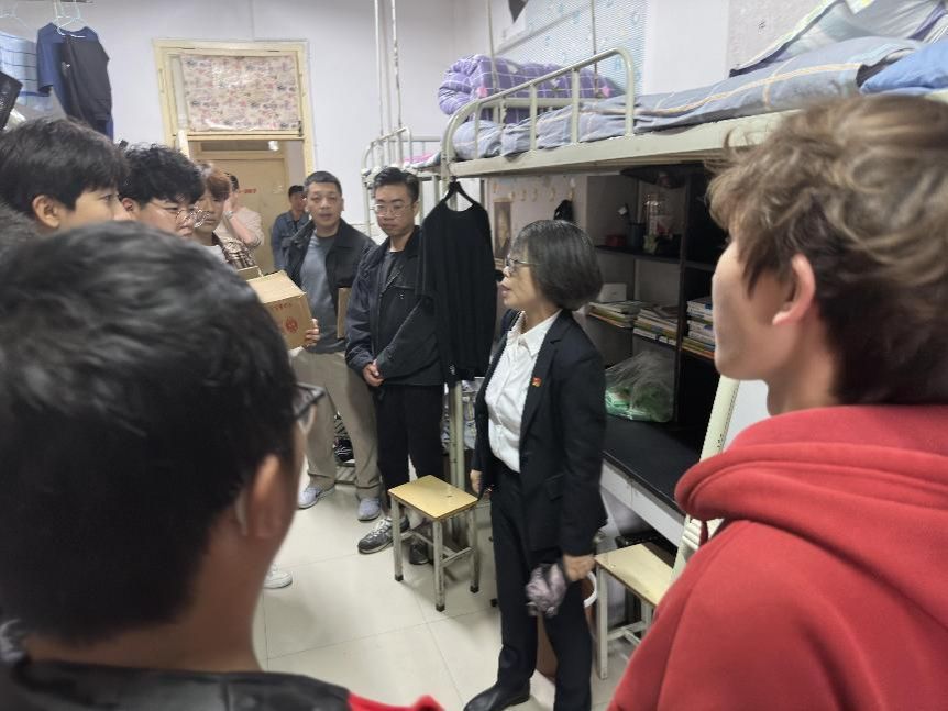 (党总支书记于咏梅讲解宿舍安全)