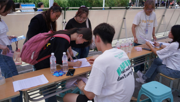 为了给学生提供安全、便捷的入学报到环境,学院在教学楼前停车场设立了迎新站点,志愿者们顶着炎炎烈日,坚守岗位,热情地接待新生。志愿者们耐心细致地为新生和家长讲解入学报到事宜,并给予引导。