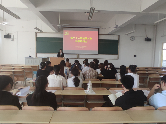 在自我答辩环节,发展对象就个人基本情况、入党动机、个人思想发展变化过程、所获荣誉奖励等方面进行简要介绍。在评委提问环节,各位老师就关于党的性质、宗旨、指导思想、党员的权利和义务、习近平新时代中国特色社会主义思想、社会主义核心价值观、党的基本路线、党的二十大精神等内容和学生如何提高角色意识、履行自身职责,正确处理好学习和工作的关系、如何处理好打游戏问题、如何处理好宿舍矛盾,如何处理好个人与集体的关系等方面展开提问,进一步考察了学生的思想政治素质、对中国共产党的认识、对党的基本理论知识和时事热点的掌握程度。考察学生的工作能力和工作水平,不断端正学生的入党动机,为党组织选拔政治上可靠、专业上合格的新鲜血液。