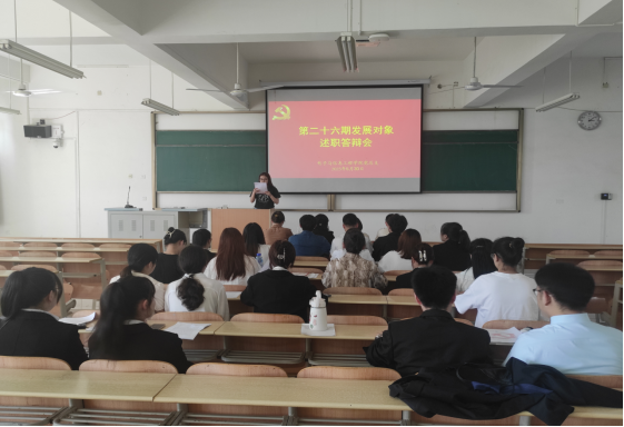 为进一步深入学习贯彻党的二十大精神,统一思想,切实增强党支部的组织力、凝聚力和战斗力,提升党员发展质量,结合党员发展工作需要,5月30日下午PP电子游戏平台网站学生第一、第二党支部在江北校区1号教学楼1305教室开展了2023年上半年发展对象述职答辩会,PP电子游戏平台网站党总支组织委员成英丽,学生第一党支部书记吕以宁,组织(纪检)委员张宇航,学生第二党支部书记李章雨,学生第一党支部党员吴皓阳、徐冲,学生第二党支部党员张炬、勾新新、乔一轩以及第26期全体发展对象参加答辩会。