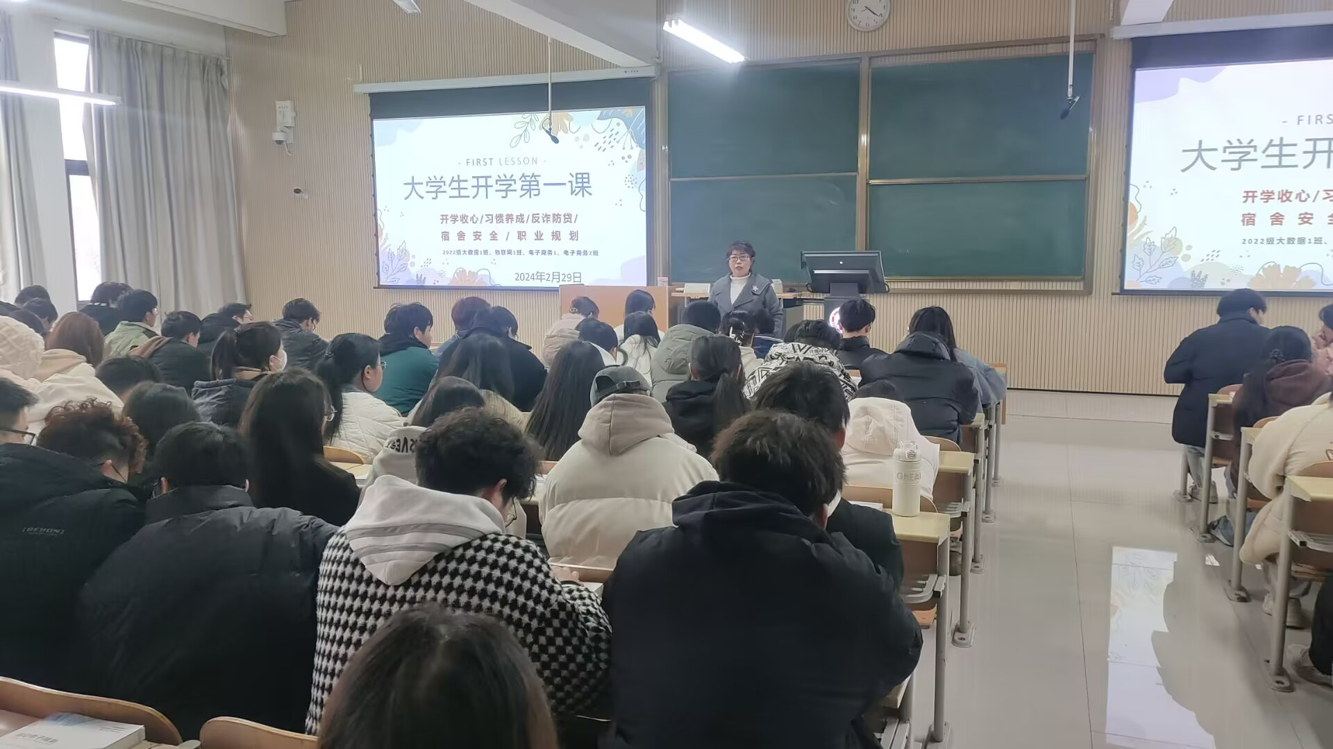 辅导员们首先强调新学期第一课的重点在于提高同学们的安全防范意识和危险识别能力,阐述了大学生安全教育的重要性,指出大学生应做到认识安全风险、培养安全习惯、掌握安全知识,提高安全防范意识和自我保护能力,力求做到“学安全,讲安全,护安全”才能更好地度过大学生活。
