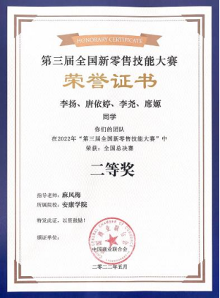 第三届全国新零售技能大赛获奖证书