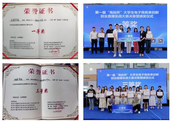 5月24日,首届“海丝杯”大学生电子商务类创新创业直播实战大赛决赛在西安灞桥区海丝电商产业园举行,全省的12所高校50多支队伍进入决赛。我院积极响应大赛号召,组织多支优秀团队参赛,最终,经过前期精心准备与实战训练,我院学子在电商直播实战中脱颖而出,斩获一等奖1项、三等奖1项,展现了学院在电商人才培养领域的深厚实力与卓越成果。