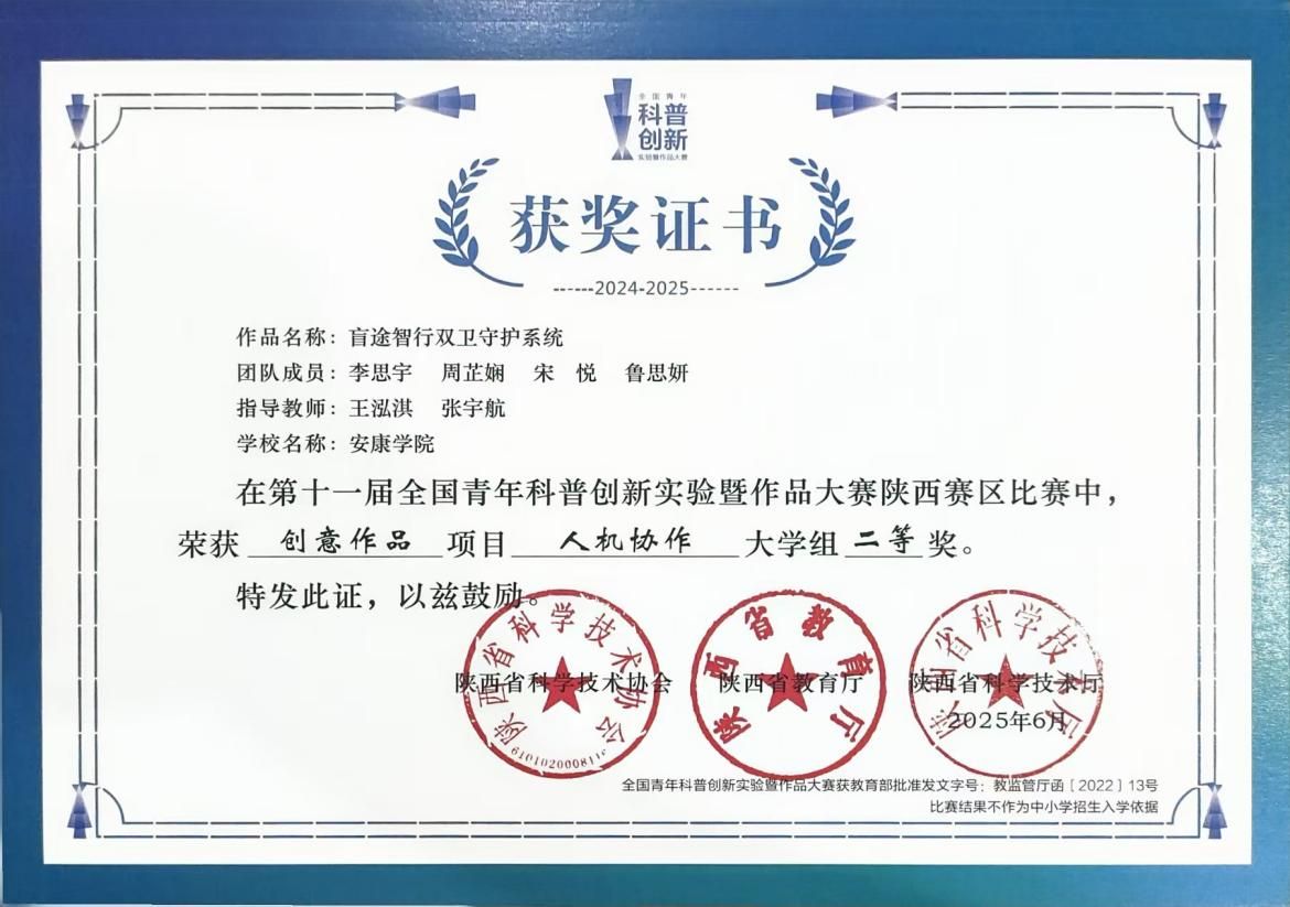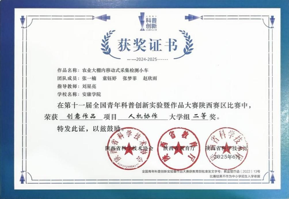附:PP电子游戏平台网站参加2025年第十一届全国青年科普创新实验暨作品大赛(陕西赛区)获奖情况: